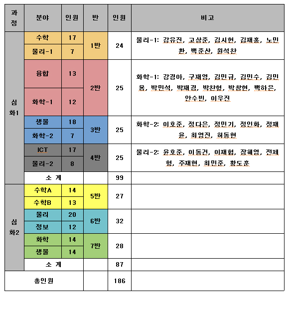 본인 반과 강의실을 정확히 확인하시고 수업에 참여하시기 바랍니다.
