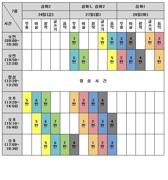 여름방학 특별프로그램과 관련하여 다음과 같이 강의실 및 준비물을 안내하오니