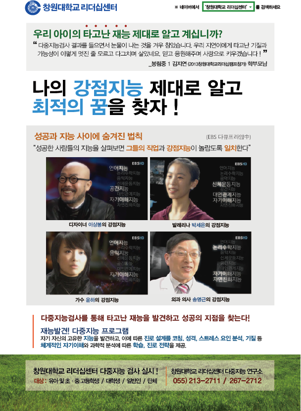 ● 문의 : 창원대학교 리더십센터 다중지능 연구소 055) 213-2711