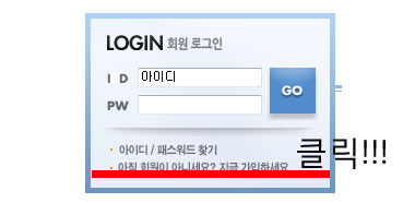 그림 왼쪽 상단에 빨간 네모를 살펴보면 로그인하는 화면이 있습니다. 빨간 밑줄 그어진 부분을 클릭을 하면 회원가입 화면으로 넘어가게 됩니다.![]()