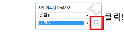 사이버 교실은 새로운 창이 나타납니다. 화면 왼쪽 하단에 잇는 사이버교실 가입을 클릭을 해야 사이버 교실에 올라온 과제를 알 수 있고 제출 할 수 있습니다.(회원가입만 해서는 사이버교실에 자동가입이 되지 않습니다. 반드시 사이버교실에 들어가서 가입을 클릭 하세요)