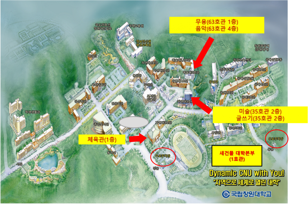 - 무용 : 63호관 106호 (※ 준비물 : 체육복[편한 복장, 치마X], 운동화, 수건, 음료수나 물)