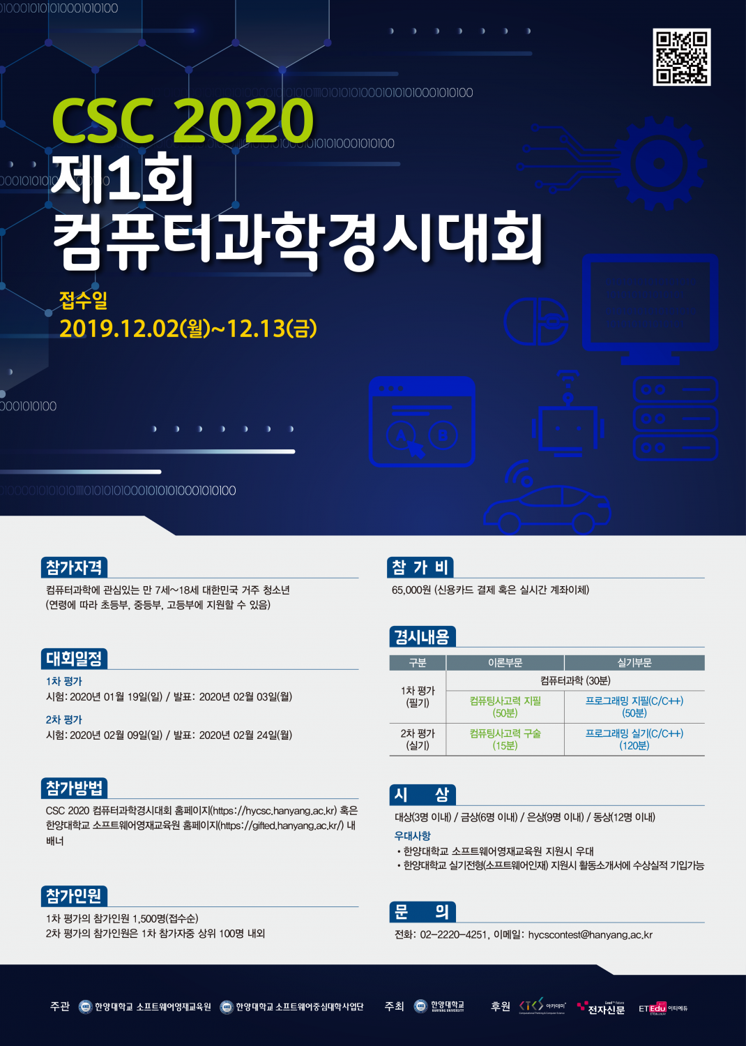 CSC 2020 제1회 컴퓨터과학경시대회 안내